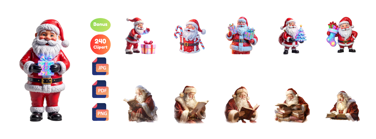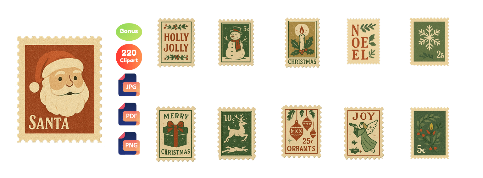 With this bundle of high-quality, ready-to-use Christmas cliparts, you can start creating instantly—no drawing, no designing from scratch, and no expensive tools required. This is your opportunity to enter (or grow in) the booming holiday niche with graphics customers love!