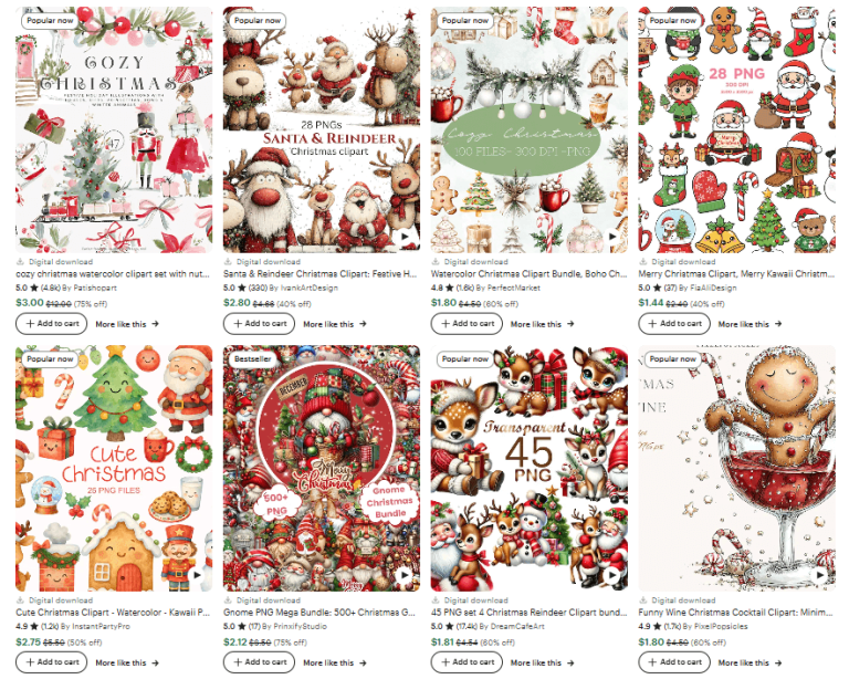 Have you noticed how popular Christmas-themed digital products have become? Each year, the holiday season brings a massive surge in demand for festive graphics, stickers, printables, wall art, invitations, tags, and social media content. And sellers who use ready-made Christmas cliparts dominate this market with ease.