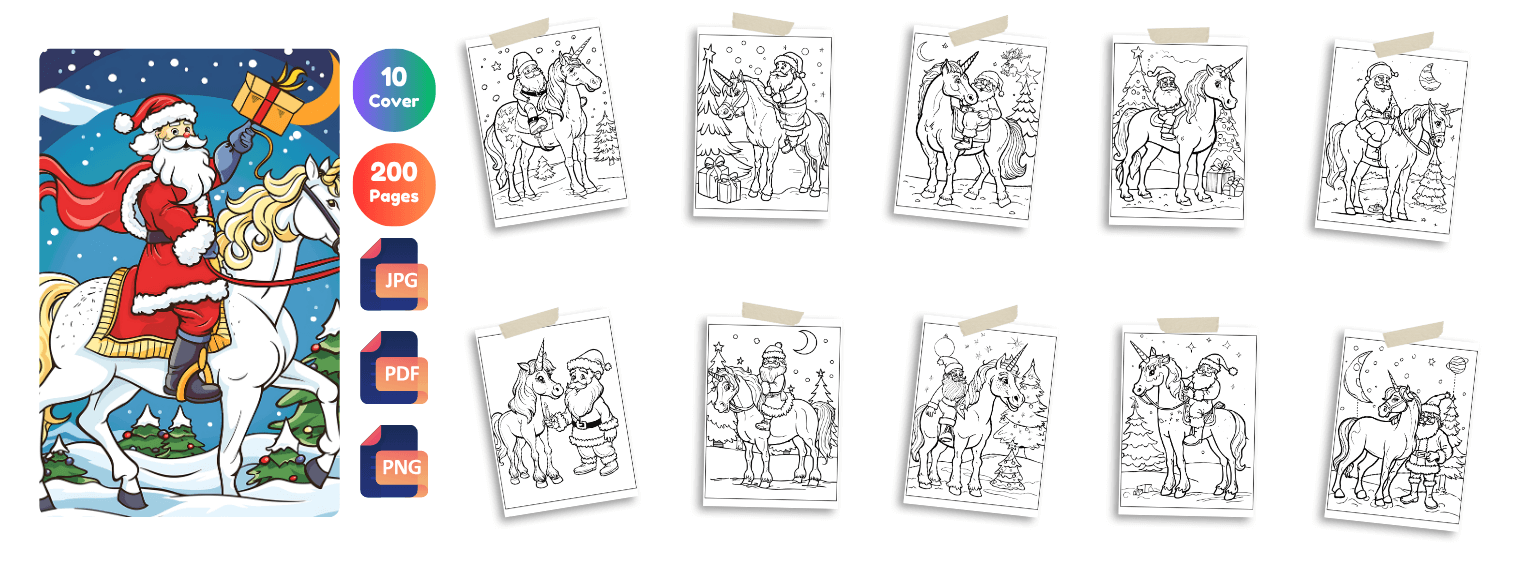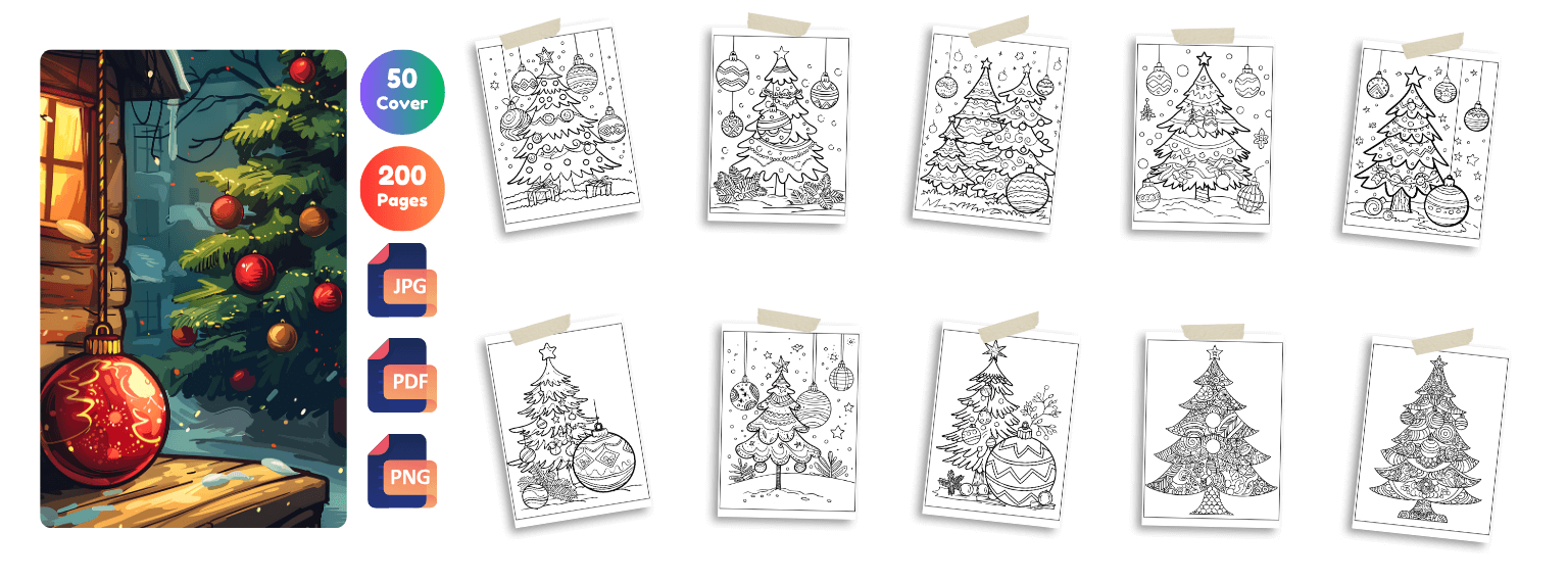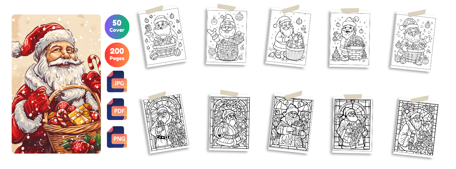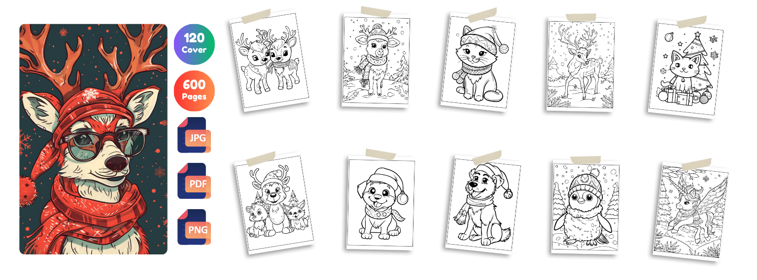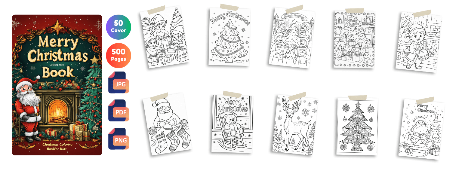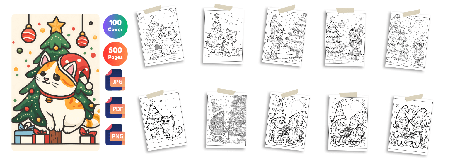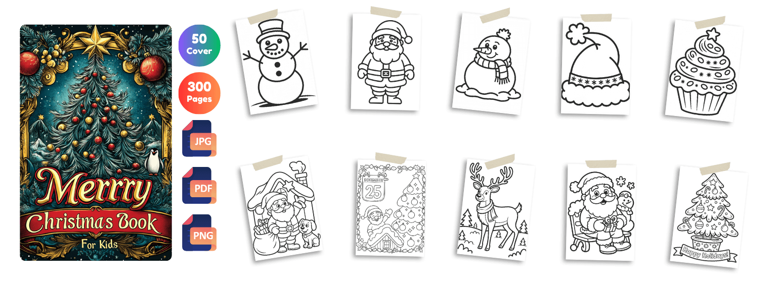 Make your books stand out with 650 professionally designed cover pages. Ideal for Christmas coloring books, activity books, and POD products on KDP, Etsy, and Shopify.