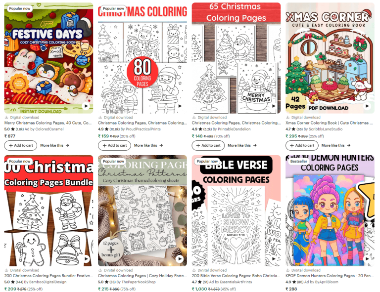 • Less Competition, More Sales:- Christmas printables and coloring books perform extremely well because holiday content is seasonal, making it easier for new sellers to succeed.
