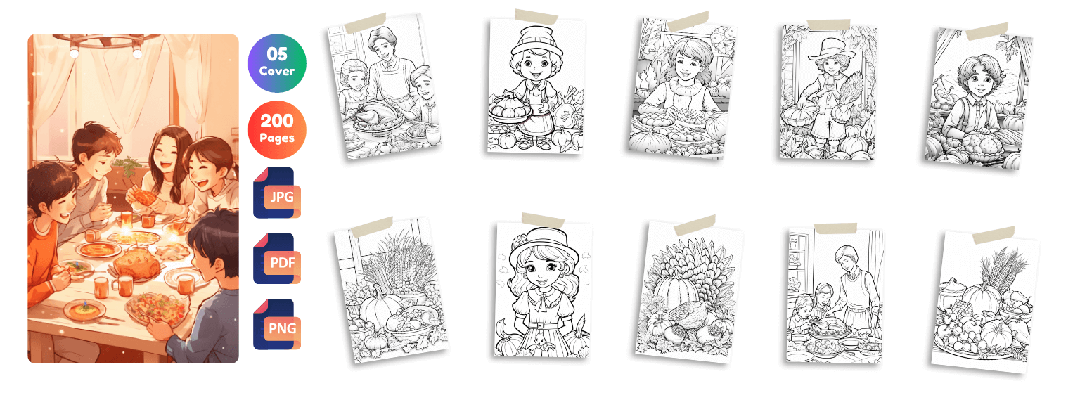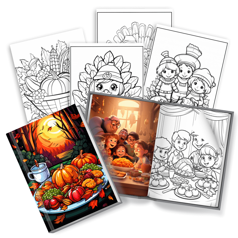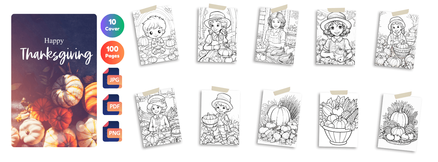 Do you love Thanksgiving? Get 1000+ Thanksgiving coloring pages filled with festive, heartwarming, and adorable holiday designs! Perfect for kids, adults, teachers, and coloring lovers. Plus, youâll get 150 bonus activity pages to add even more fun and creativity to your collection!