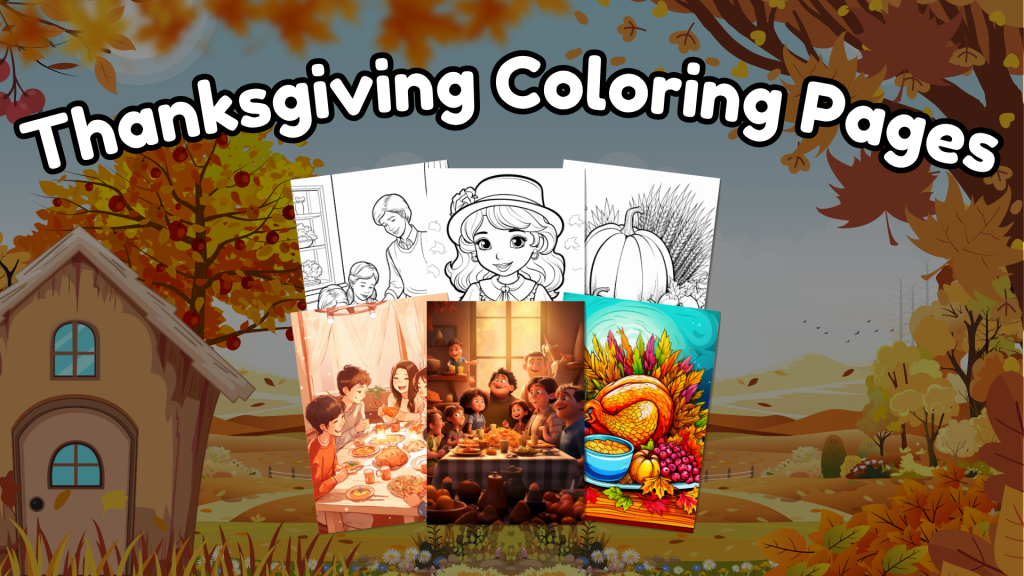 Enjoy 1,000 festive Thanksgiving coloring pages featuring turkeys, pumpkins, fall leaves, harvest scenes, family dinners, and gratitude themes â perfect for kids, adults, and holiday creators!